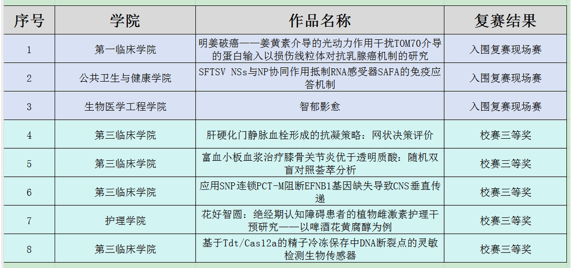 现对获得三等奖及进入复赛的项目名单进行公示: